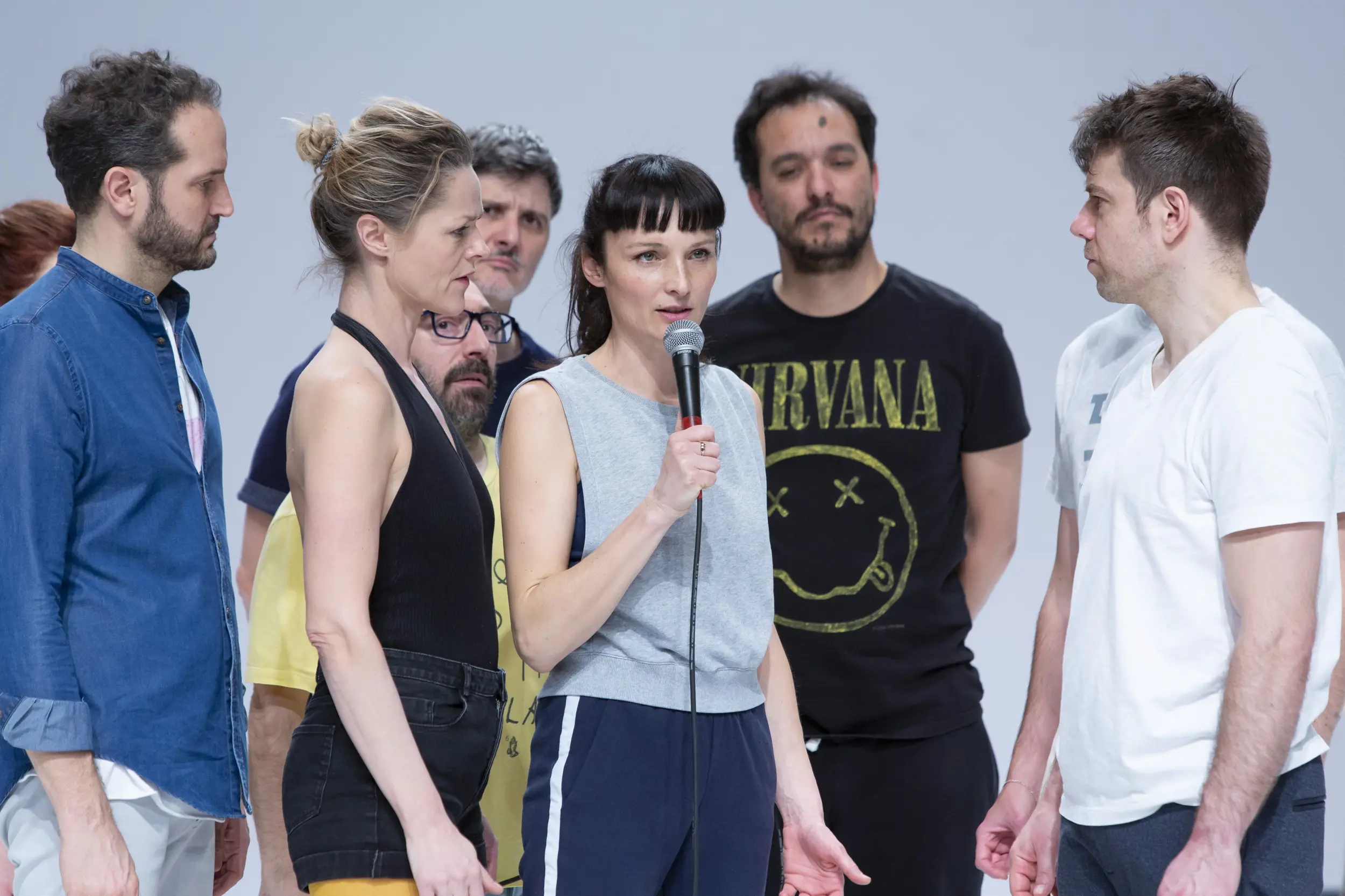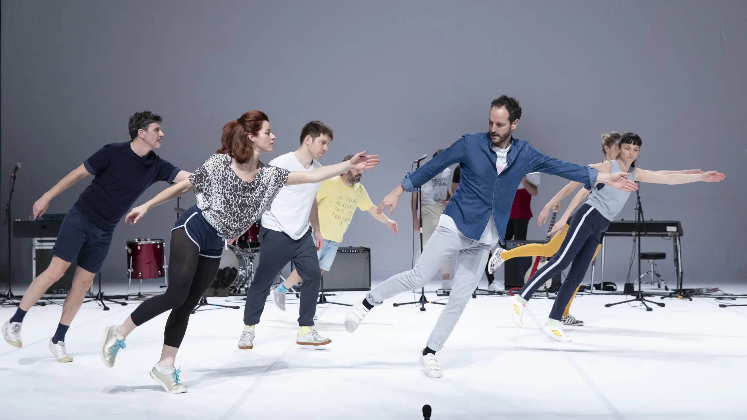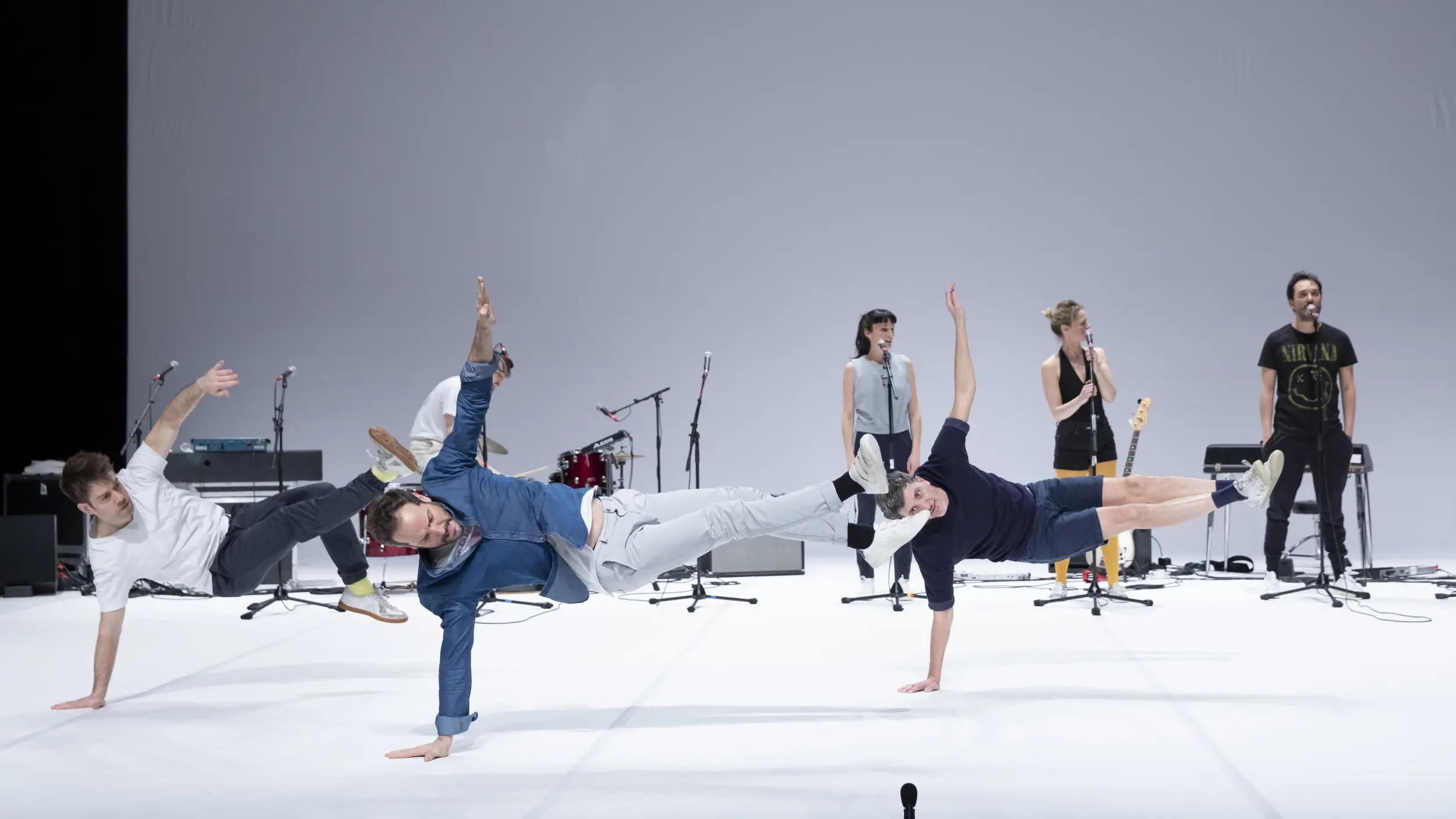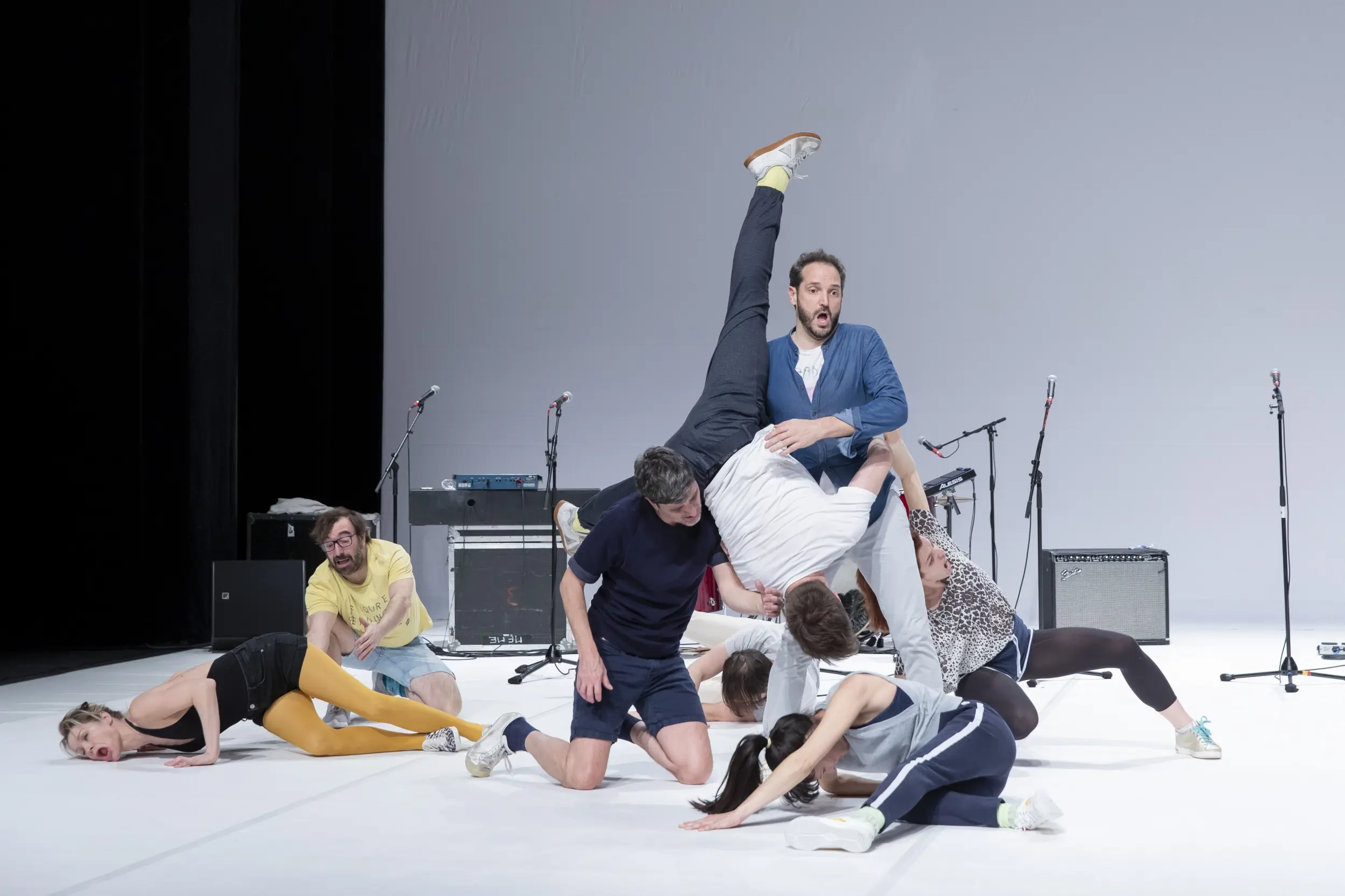 Neuf danseurs performeurs s’agitent et dansent. Ils recommencent en boucle un même morceau, mêmes sons et mêmes mouvements, musique « transrock ». Un grain de sable dans la machinerie quand l’un d’eux arrive en retard au spectacle. Tout s’emballe. Fête jouissive d’une impossible reproduction d’un même geste qui se change en son contraire. Les gags à la Buster Keaton entraînent une chorégraphie tonique, comédie musicale expérimentale d’une énergie dingue. Théâtre, musique et danse s’entremêlent, convoquent le rock du groupe Microréalité, dézinguent le mythe d’Œdipe et ses fatalités. Rien n’est jamais prévisible, rien n’est pareil à rien, comme une définition du spectacle vivant. Après Micro, Press, Arrêts de jeu, Érection et Théâtre des opérations, Pierre Rigal, athlète de haut niveau, fomente un objet d’une liberté joyeuse, une explosion de surprises et de trouvailles.