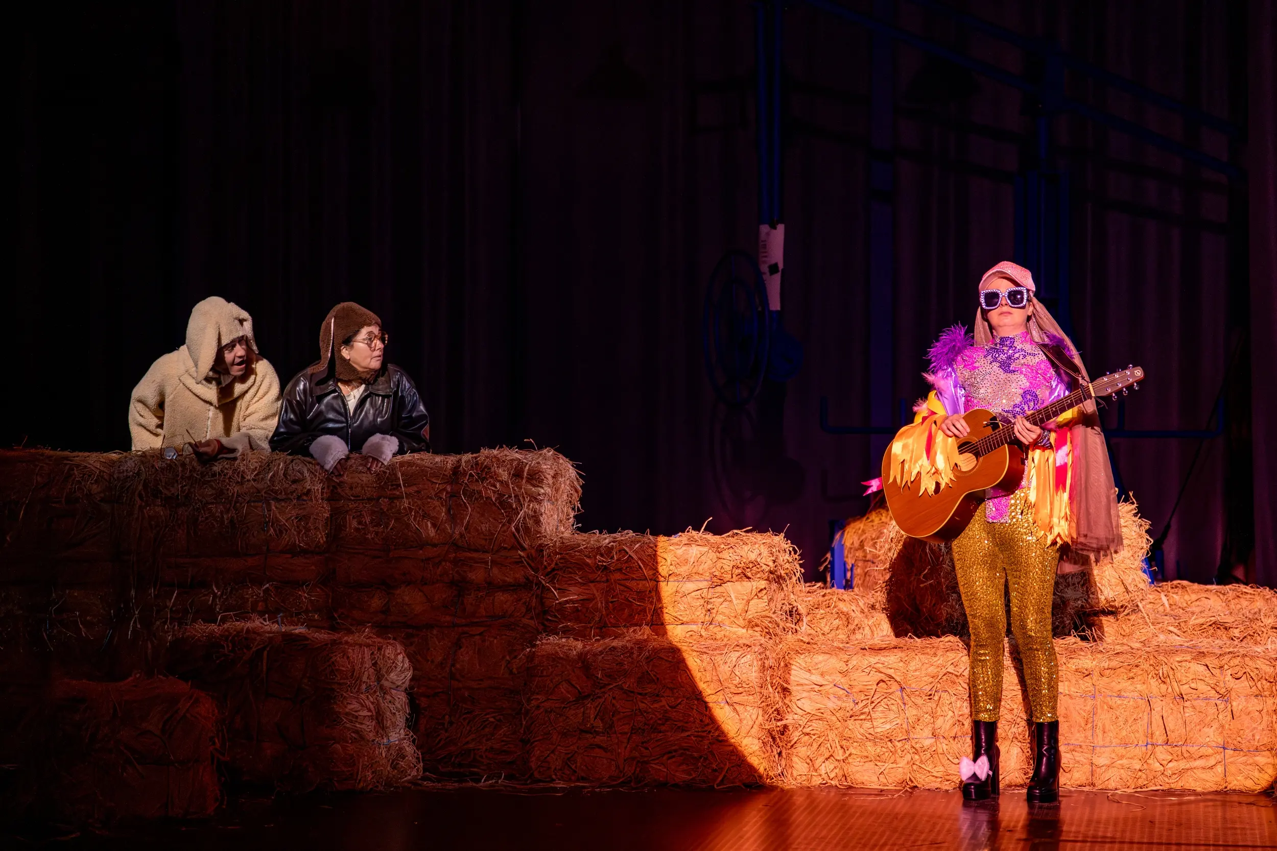 Une ferme à la lisière de la ville… On y trouve des moutons causeurs qui se rêvent philosophes, une famille d’agriculteurs endeuillés, un jeune stagiaire comme un agneau parmi les loups et une pigiste aux dents longues qui veut en découdre avec le groupe chimique responsable de la tragédie familiale… Après Opéraporno et Les gros patinent bien, Pierre Guillois signe une fable cocasse et osée sur un monde paysan entraîné dans les soubresauts du siècle. L’actrice Cristiana Reali entourée d’une troupe haute en couleur offre toute sa géniale démesure à ce drame rural. Les interprètes donnent vie à des personnages aussi drôles que paumés et leur voix à des brebis qui en ont gros sur le cœur !