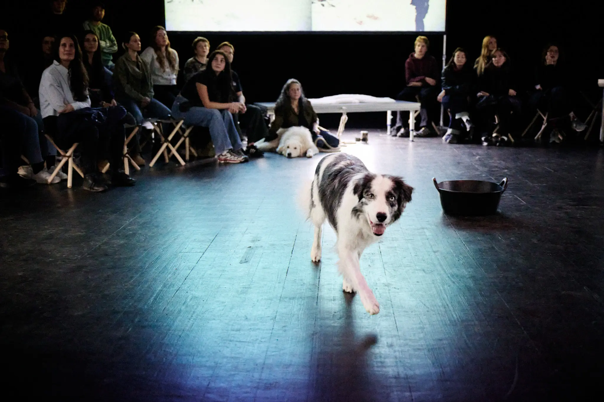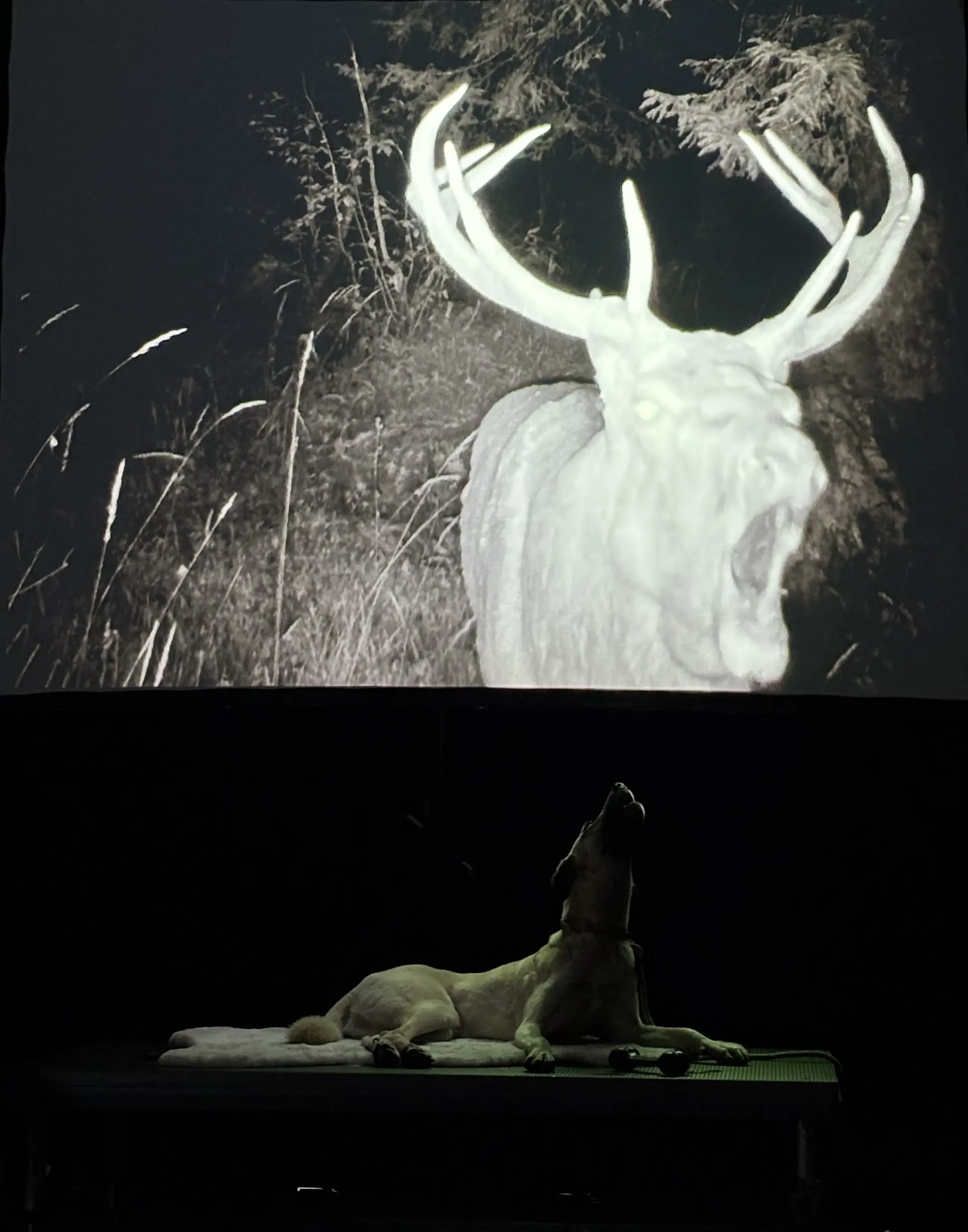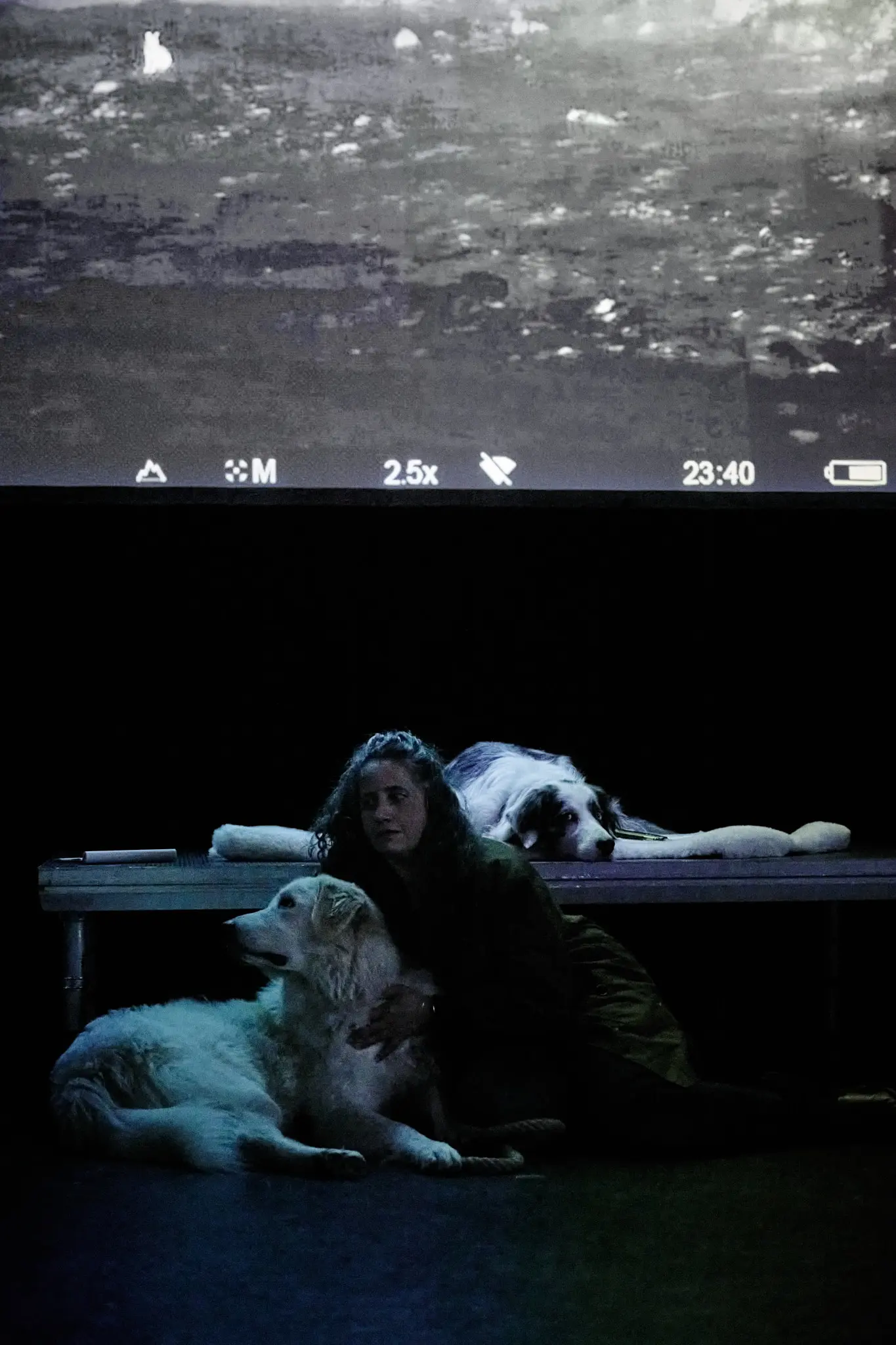 ShanjuLab est un laboratoire de théâtre qui interroge le lien humain-animal et propose des spectacles éveillant de nouveaux imaginaires. L’artiste et chercheuse franco-suisse Judith Zagury s’intéresse ici aux loups et à notre rapport à l’altérité et au sauvage. Après presque un siècle d’absence, les loups se sont réinstallés dans la région du Marchairuz (Jura suisse), à quelques pas de la compagnie ShanjuLab, qui s’est donc penchée sur ses nouveaux voisins. Dans une forme théâtrale d’un genre particulier, des comparses, accompagnés de chiens, nous font vivre leur enquête de terrain dans un dispositif vidéo et sonore immersif. Pistages, veilles nocturnes, interviews, observations, nous voilà plongés à leurs côtés dans une passionnante quête.
